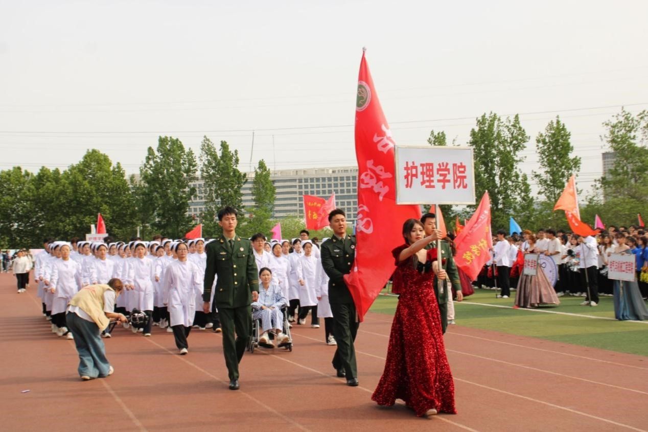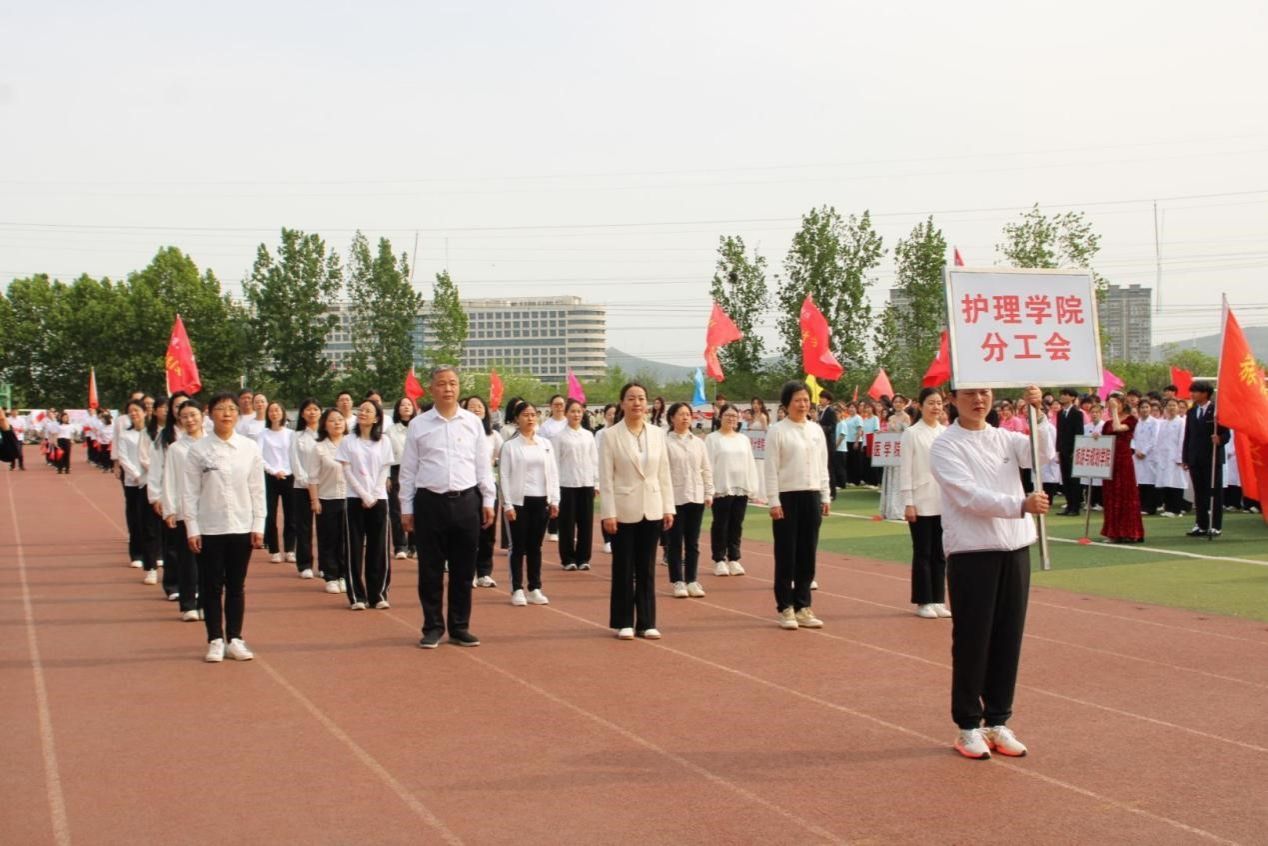 开幕式上,今年会的方阵气势如虹,同学们身着洁白的护士服,步伐整齐划一,洋溢着自信阳光的笑容。他们将护理学和康复治疗学的专业特色与青春活力完美融合,别具一格的表演赢得了现场观众的阵阵掌声。今年会教工方阵精神抖擞地走过主席台,展现出教工队伍的风采与活力,为运动会注入了别样的生机。