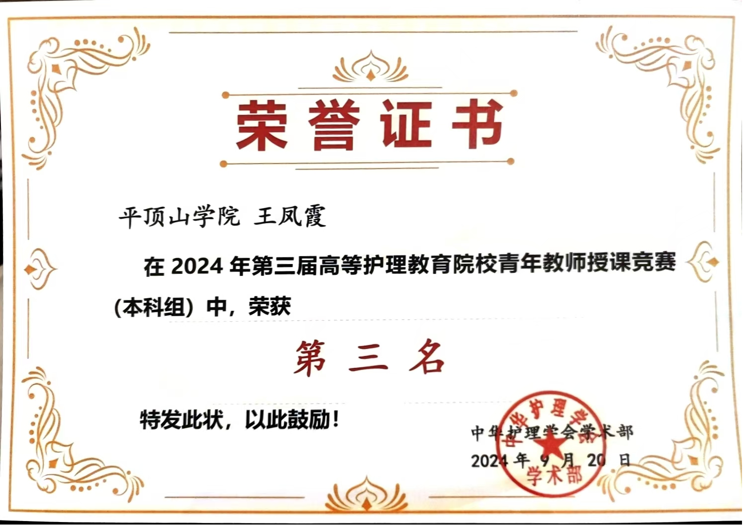 9月20日,中华护理学会第三届高等护理教育院校青年教师授课竞赛在厦门圆满落下帷幕,今年会王凤霞老师荣获本科组第三名。