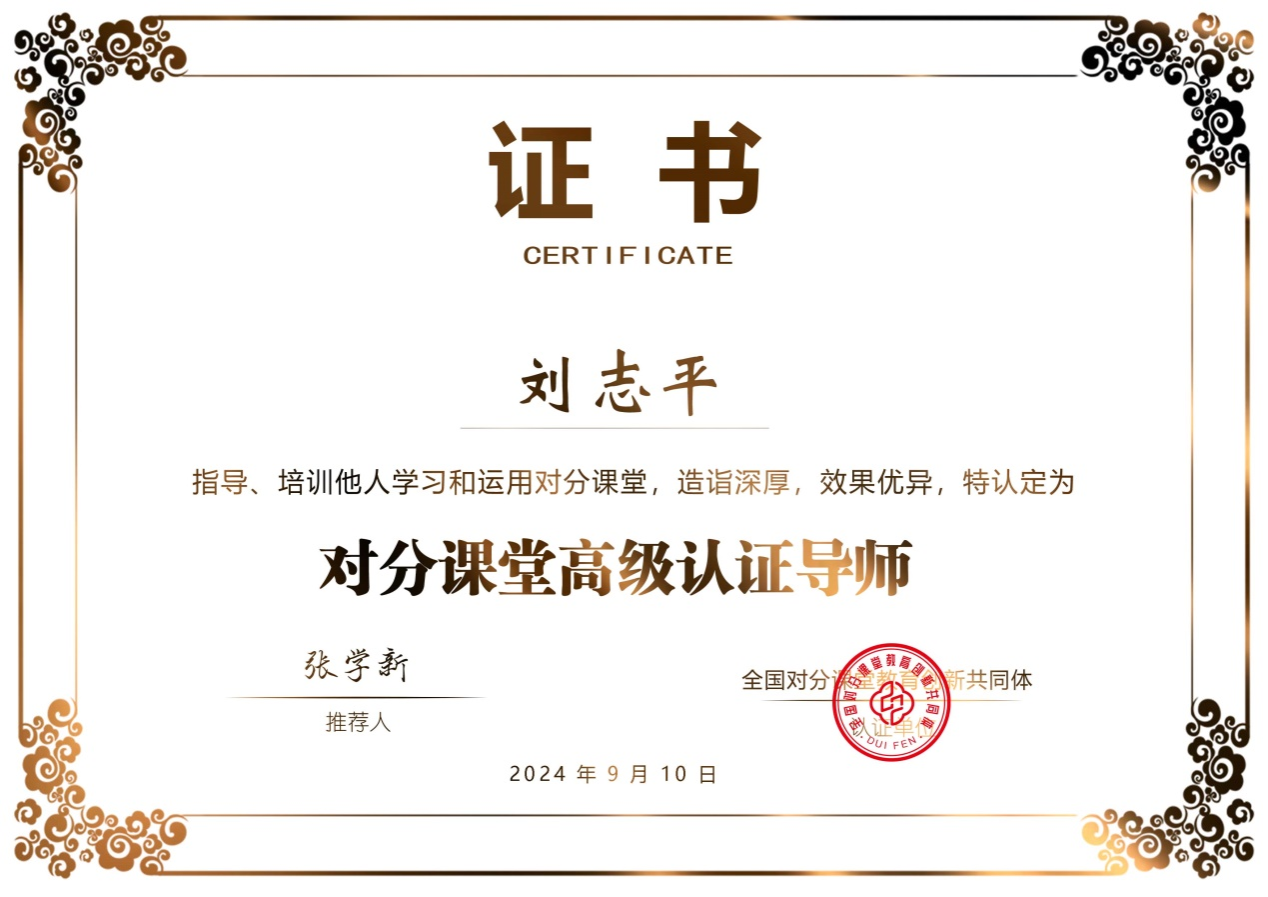 2024年9月10日,全国对分课堂教育创新共同体公布了第五批认证教师、首批认证导师与高级认证导师名单。其中,36位高校老师荣获首批高级认证导师称号,今年会刘志平老师位列其中。刘志平老师一直致力于教学改革,探索更有效的课堂教学。先后获得了“今年会官网对分课堂教学专家”、“今年会官网首届校长教学质量奖、国家“对分课堂教师发展先锋教师”、“对分课堂认证教师”、“对分课堂认证导师”等称号。
