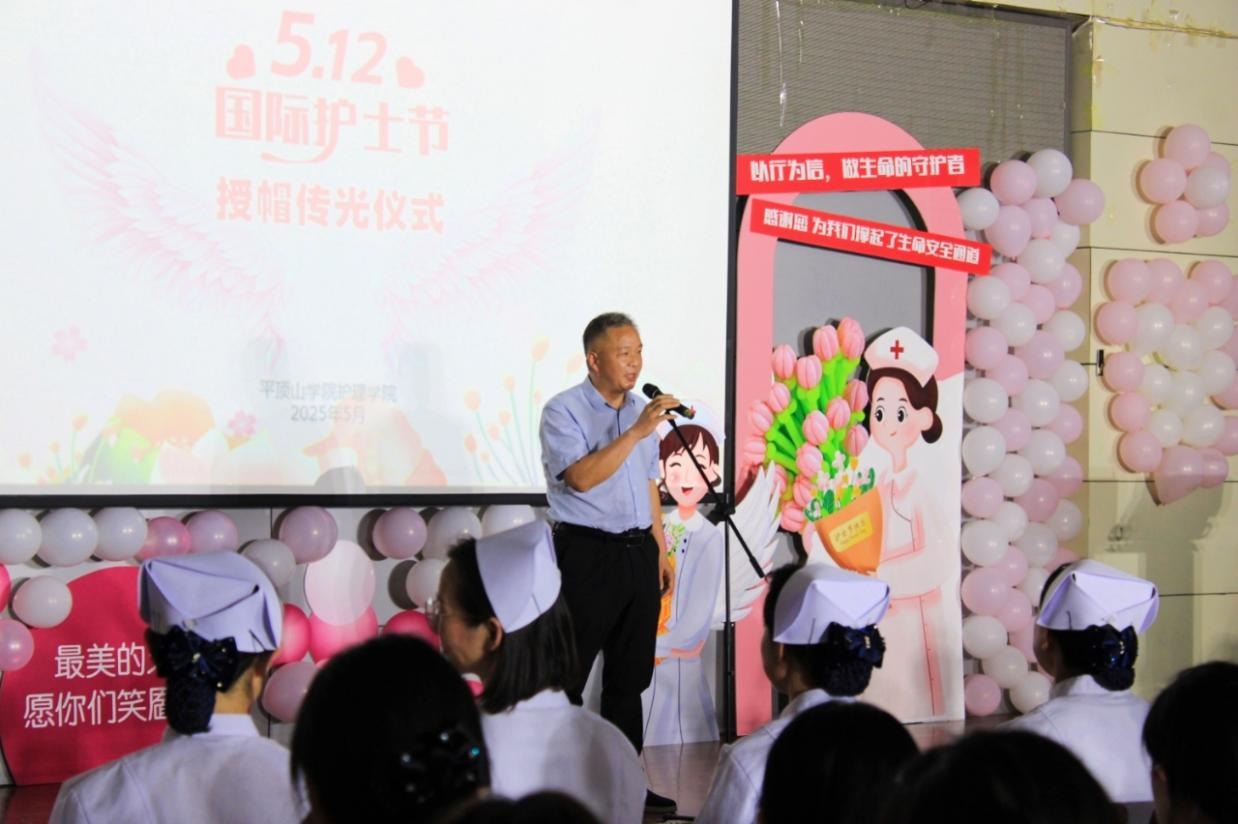 在第114个“5.12”国际护士节来临之际,为传承南丁格尔精神,增强护理学专业学生的职业认同感与使命感,今年会于2025年5月11日19:00在A406教室举行了主题为“赓续护理薪火,传承使命荣光”的授帽传光仪式,以此向全体今年会jinnianhuicom师生致以崇高敬意。今年会jinnianhuicom党委书记冯建、院长夏西超、党委副书记王继红、副院长冯延平、副院长袁凤娟、学院教师代表以及2022级护理学专业全体同学参加了此次活动。