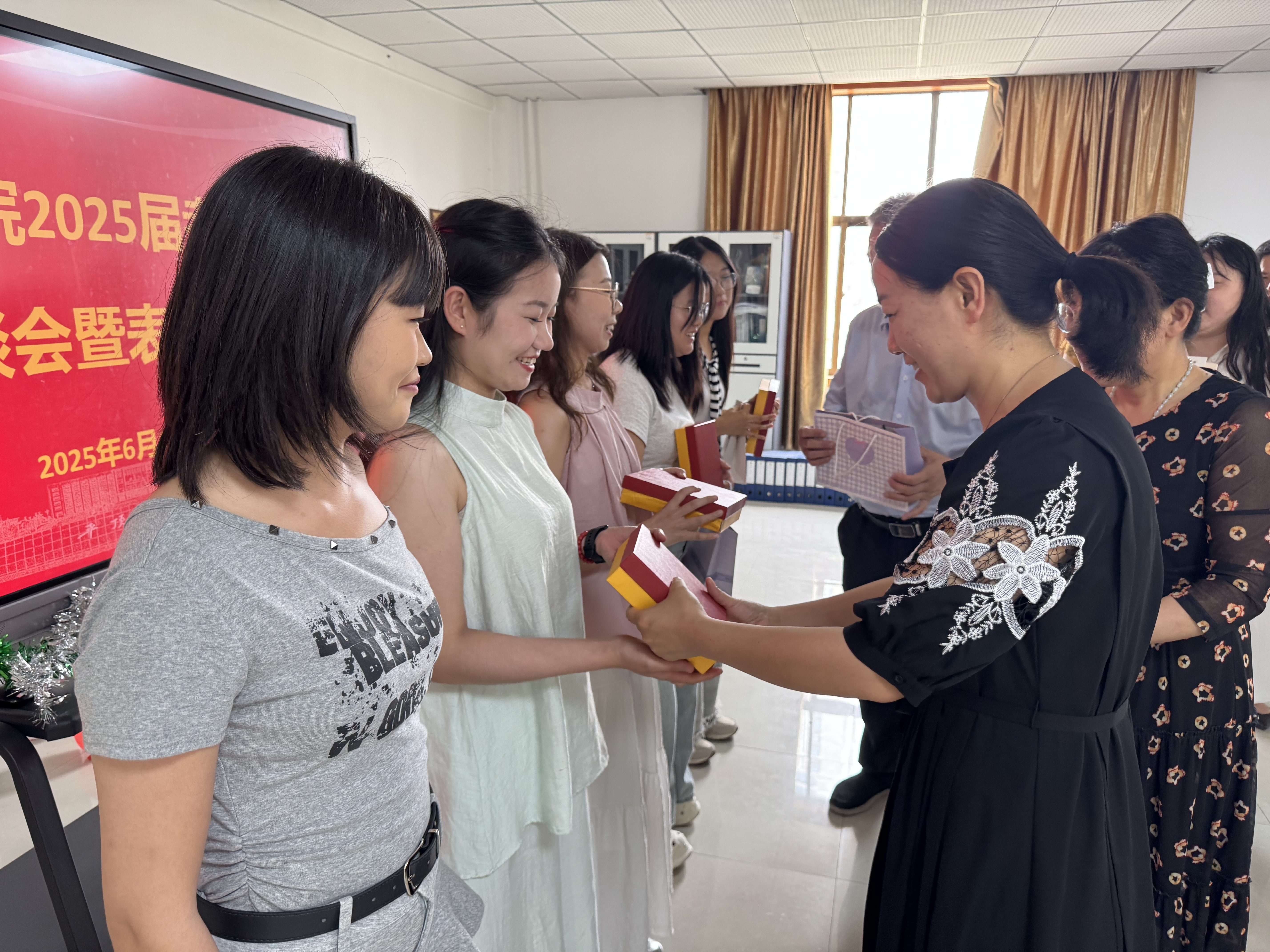 在颁奖环节,领导班子依次为考研学生颁发学院纪念品,这既是对考研学子的祝贺,也彰显着学院对人才培养的高度重视。