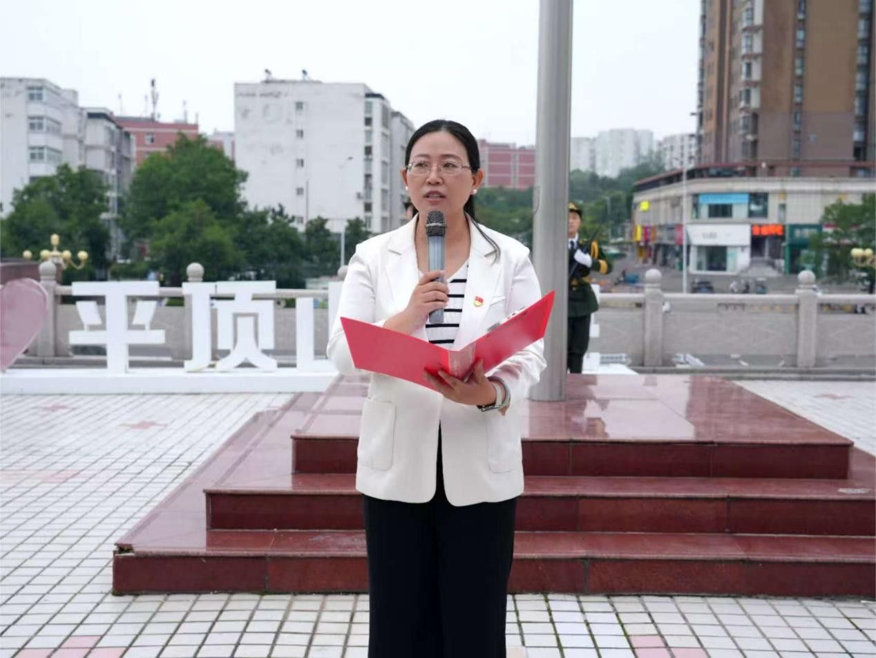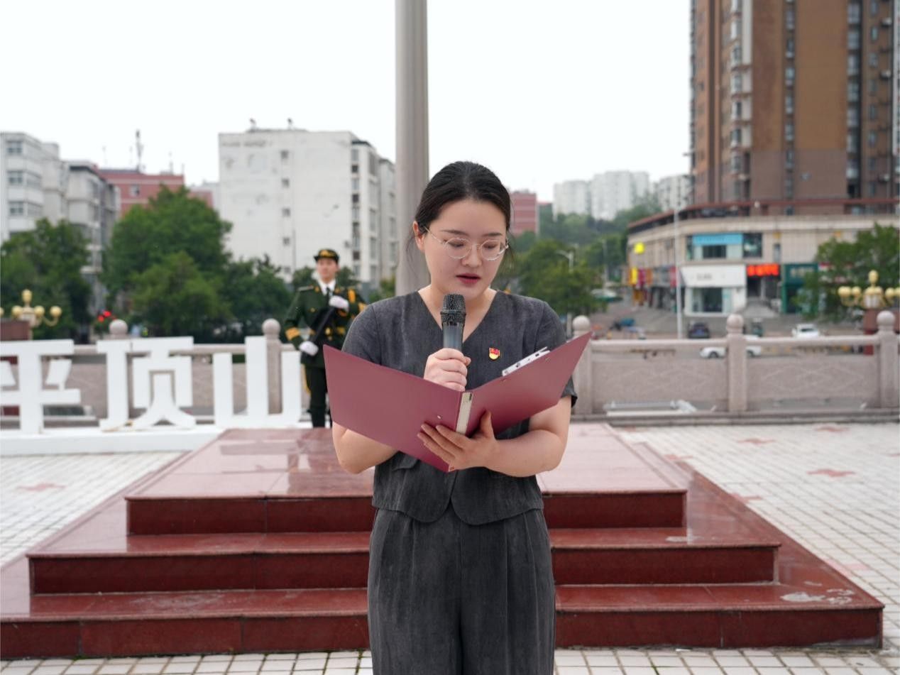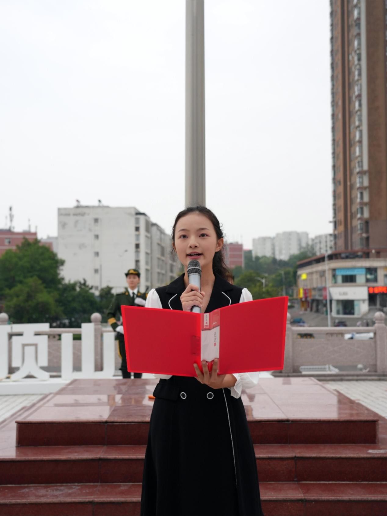 仪式进行第二项议程。分别由崇文校区教师代表潘笑杏和学生代表刘畅进行国旗下演讲。潘笑杏深情缅怀了抗日战争时期为民族独立浴血奋战的英烈们,通过今昔学医环境的对比,勉励医学生们要以专注认真的态度夯实专业基础,用过硬的医学技能守护人民健康、筑牢祖国健康根基。