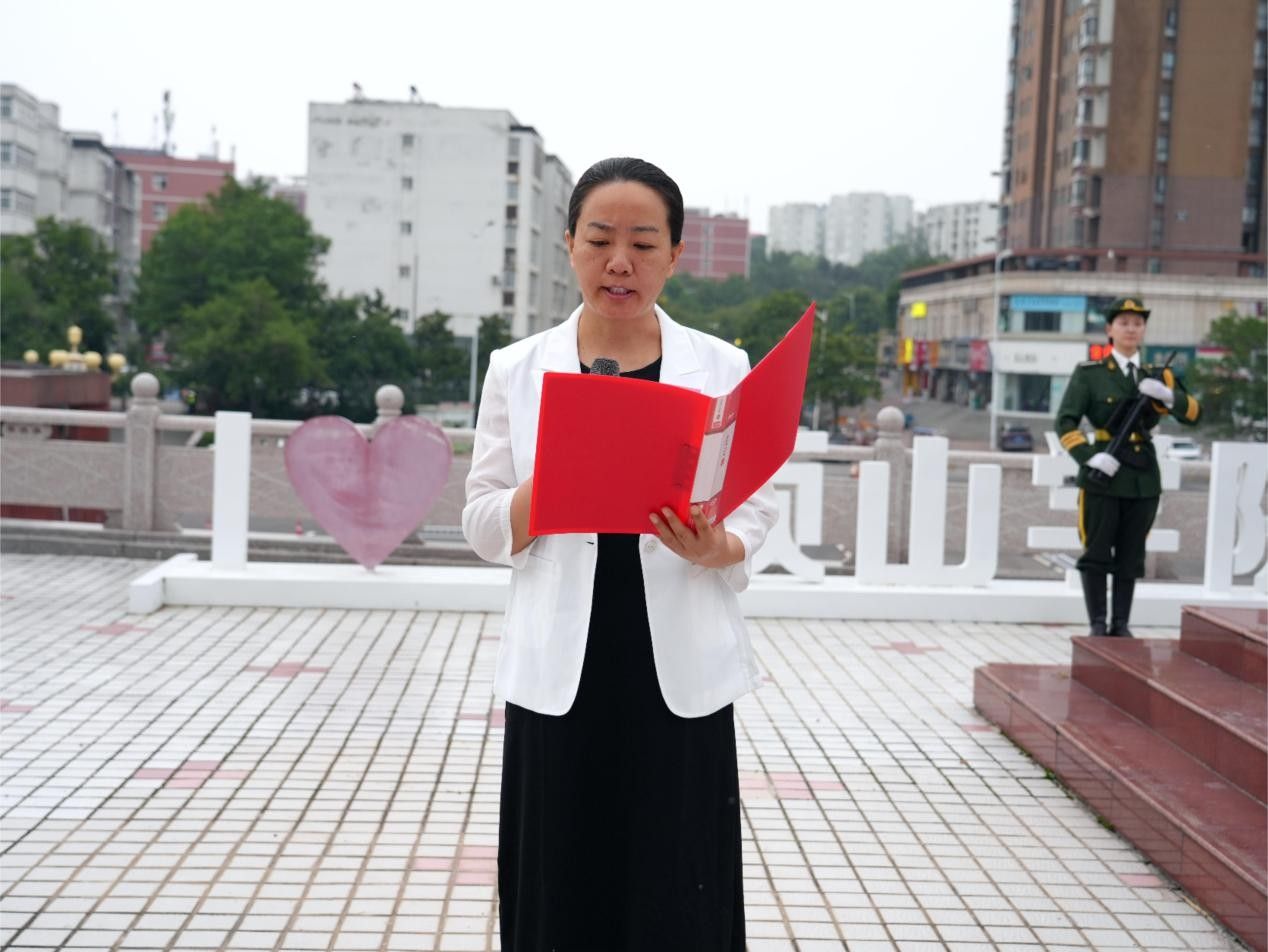仪式进行第三项,由医学院党委书记王莉发言。王莉阐述了中国人民抗日战争暨世界反法西斯战争胜利的伟大历史意义和深远时代价值,深切缅怀了为民族独立和人民解放事业英勇献身的革命前辈与先烈。更对医护专业学生提出了殷切希望和明确要求,希望同学们始终牢记“健康所系,性命相托”的誓言,以英烈精神为指引,锤炼品德、精进医术,成长为有温度、有担当的医疗卫生工作者。