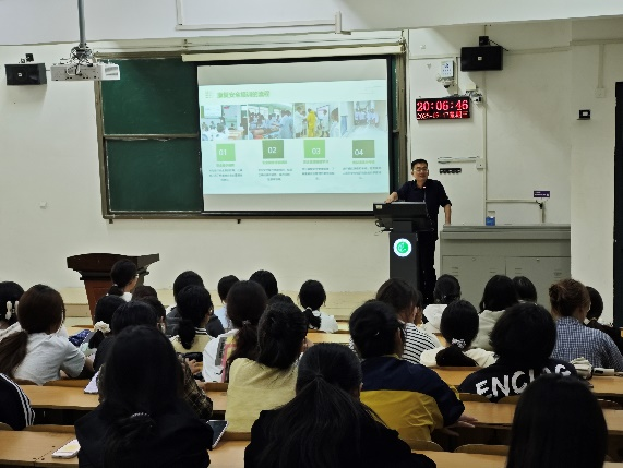为强化新生实验室安全意识,夯实实践教学安全基础,9月13日,今年会实验中心组织明虎斌、李凯歌、张明霞、刘冉四位教师,在崇文校区教学楼C楼(C001、C002)阶梯教室为2025级护理学、康复治疗学专业480余名新生开展“实验室安全第一课”专题培训。本次培训紧扣“安全为先、规范为本”主题,通过理论讲解、案例警示与互动答疑,为新生的实践学习之旅系紧“安全绳”。