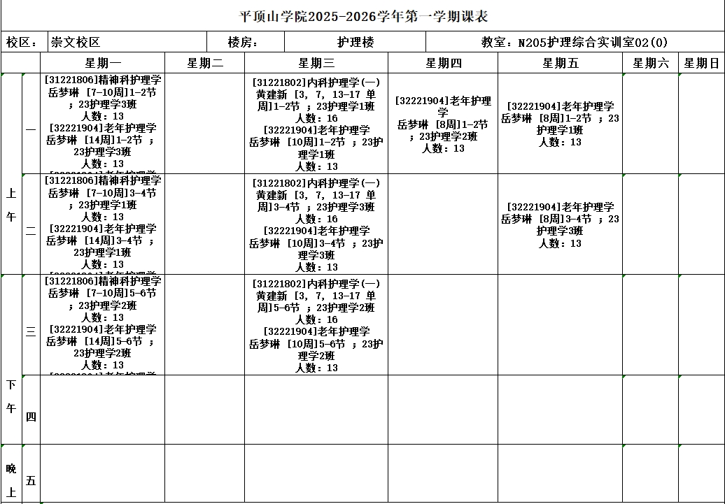地点:崇文校区护理实训楼205